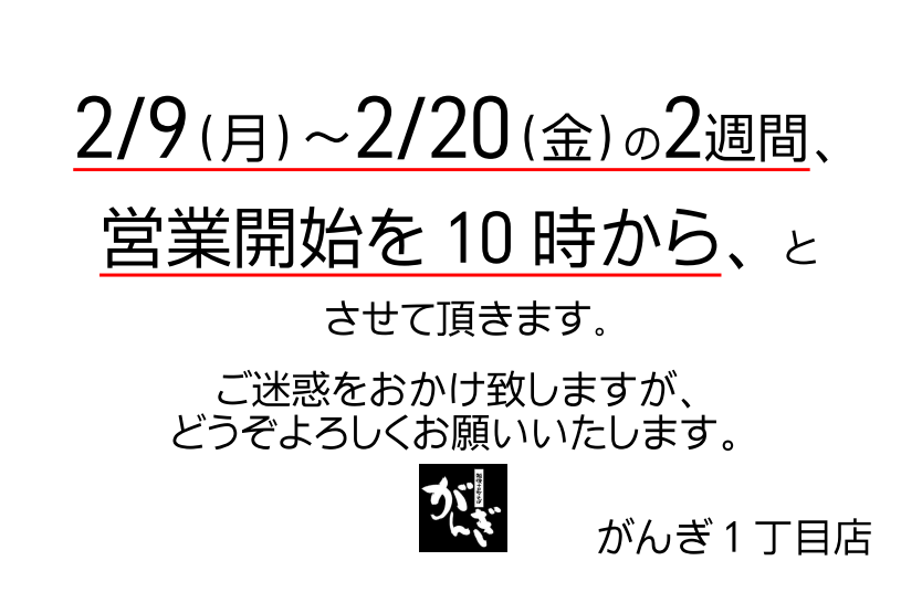 平素はがんぎ1丁目店をご利用いただきありがとうございます
